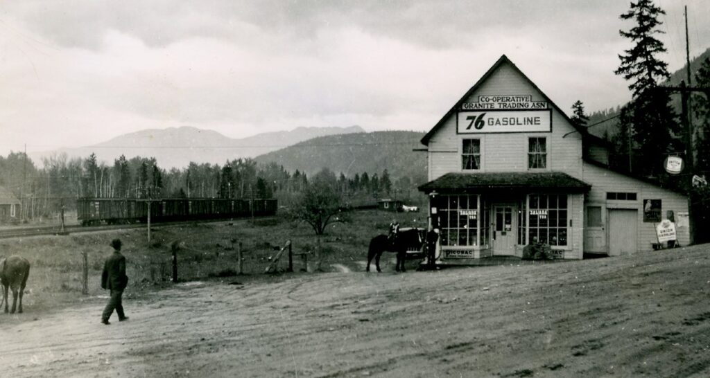 In 1913, many of the settlers decided to form a Farmer’s Exchange to market their produce so they could avoid being exploited by distributers. A building was constructed and soon the Exchange was also used for purchasing supplies. This building became the office, and the Calhoun warehouse was the grocery and feed store. When Henry Banks complained about his loss of business, the Exchange purchased his store in 1915, which became a cooperative that was initially called the Granite Trading Association (now the Tappen Co-op).
