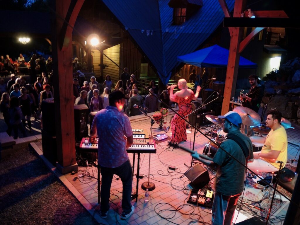 We have been to every Roots and Blues festivals since it began (except of course in 2023 due to the Shuswap Firestorm). Often I connect with musicians and book them to play at one or more of the venues where I book shows. In 2012 we grooved to Coco Jafro and then booked the band at our Passion Bowl in 2018.