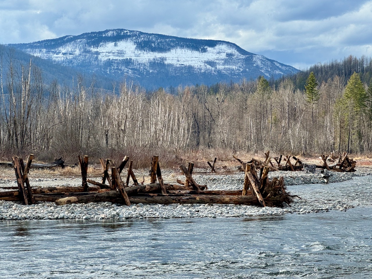 Skwlāx Resource Management worked with the SteS Guardians to install the first set of what eventually will be many large wooden structures (LWS) and smaller post assisted log structures (PALS) on the banks of the river. This work was completed during low flow when the banks were dry to minimize any interaction with the water. These structures are designed to mimic nature and allow for the water to pass above them during high water.