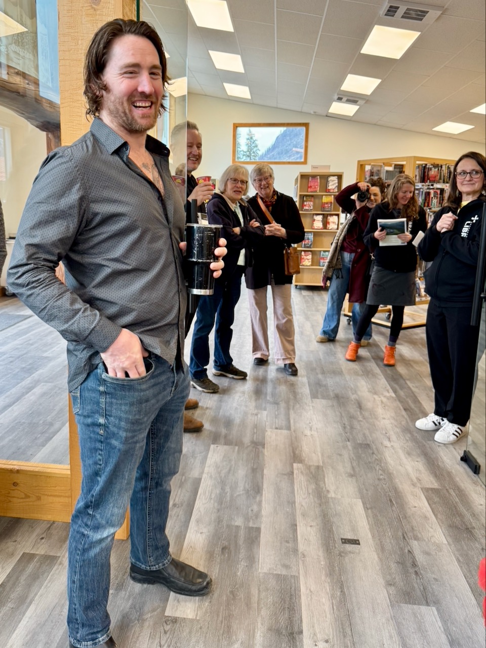 North Shuswap’s library is part of the Okanagan Regional Library system that has 30 libraries, with nine in the Shuswap. Several regional library staff joined the opening celebration, including the CEO Danielle Hubbard. When I asked Dannielle how libraries stay relevant in today’s digital world where so many people are glued to screens and especially their phones, she explained how libraries have become far more than just places that lend out books. Their focus now is to create spaces for people to gather indoors and participate in a diversity of programs.